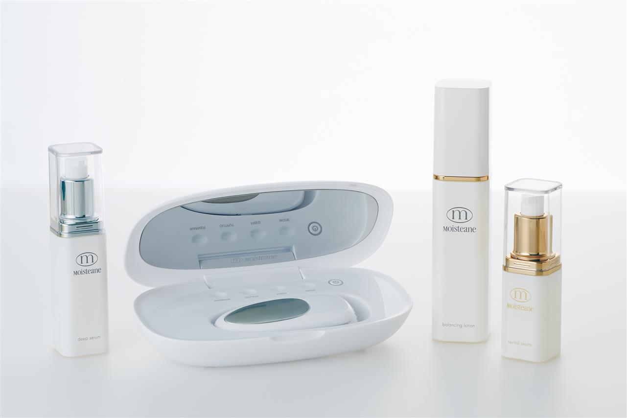 コンディショナーと専用化粧品との組み合わせで、無感覚刺激の美容マッサージを行いながら、美容成分を肌深くに浸透させていきます。